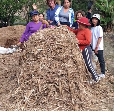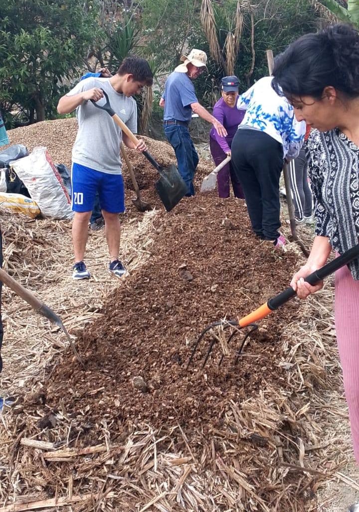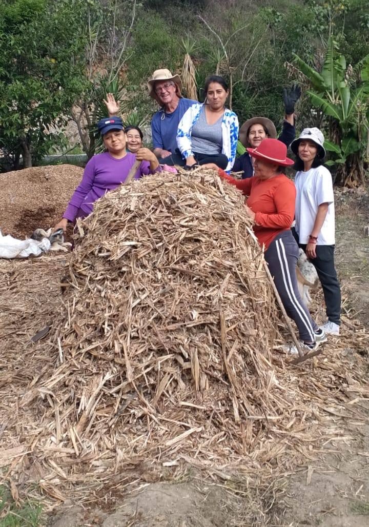 .A few days ago I gave a workshop on building a compost pile to the Tumianuma garden ladies. We had already bought truck loads of Bogasa ( crushed sugar cane stalks) from a nearby Molienda, peanut hulls, and lots of sacks of goat manure. We also had some cow manure.
