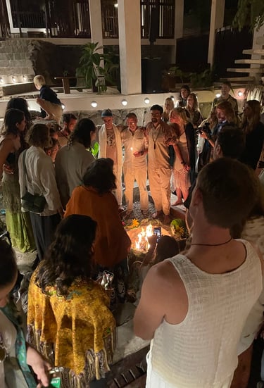 Todavía estoy en el lago Atitlán, en la conferencia profética sobre DAOs, aunque salgo mañana por la mañana. Me alegra haber venido, aunque estuvo un poco desorganizada para mi gusto. Sí honramos a los pueblos mayas y participamos en muchas ceremonias. Algunas de las fotos son de esas ceremonias: una ceremonia de agua, una de fuego, una ceremonia de cacao, y pasé dos horas y media en un temazcal tradicional. Fue una experiencia muy conmovedora. Incluso bailé un poco.