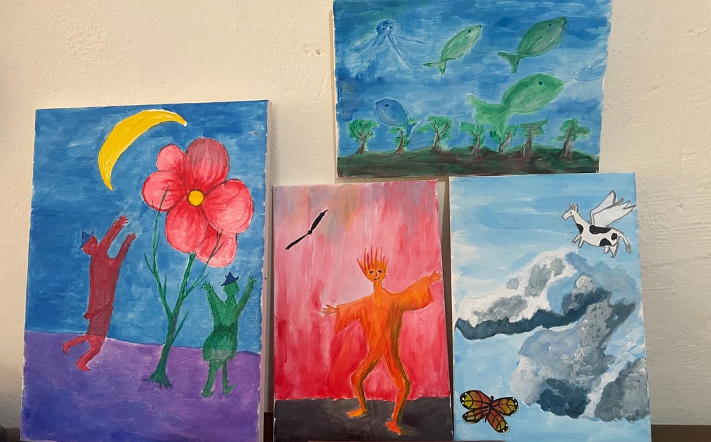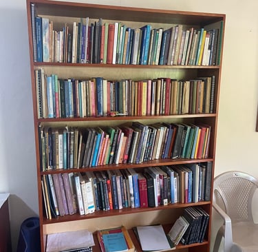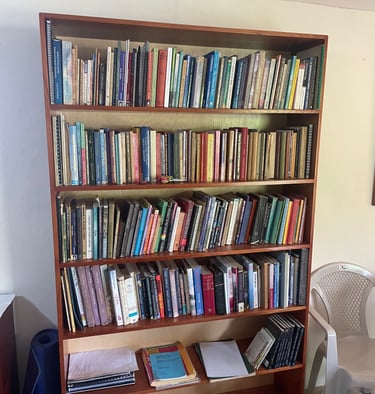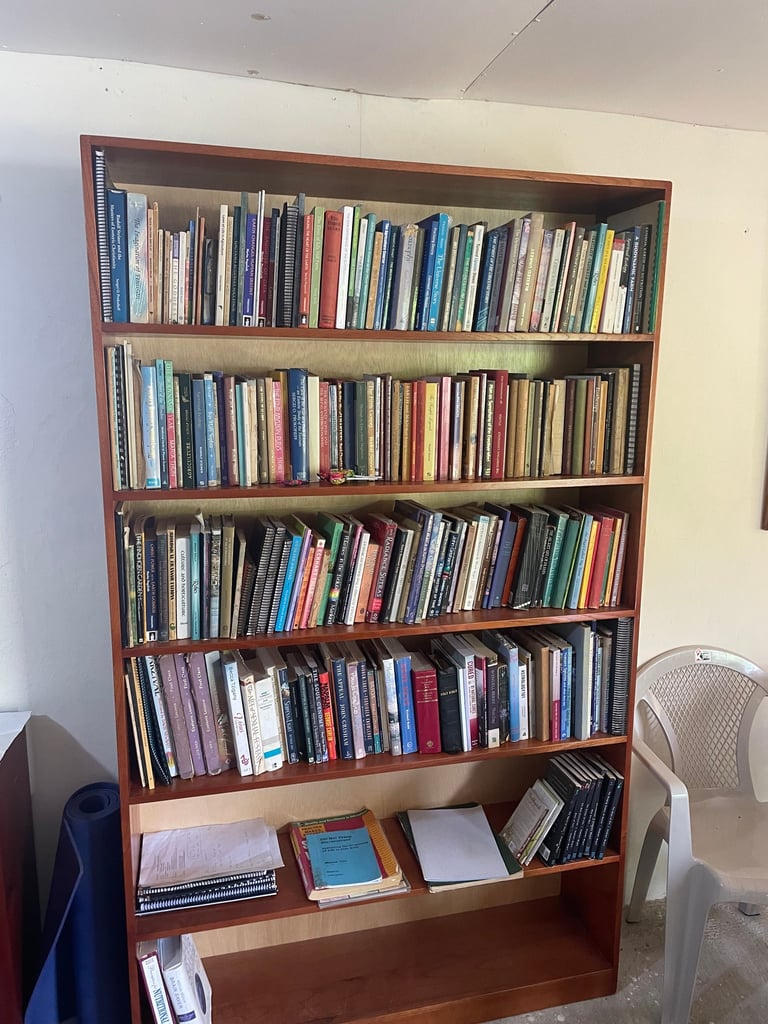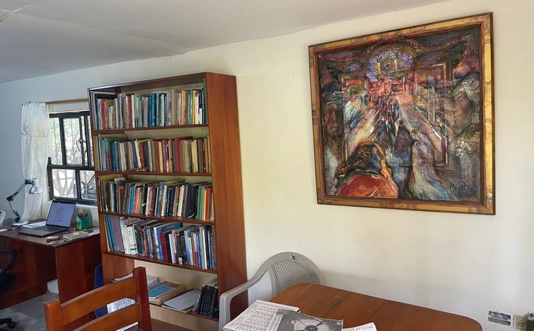 Just in case you're wondering how I have set up my house, I included some photos. The white board is from a lecture I gave to some of the garden ladies. The four paintings are from a painting class here in Vilcabamba. Maybe not very talented but they represent water, air, fire and the ether. The class was a lot of fun.